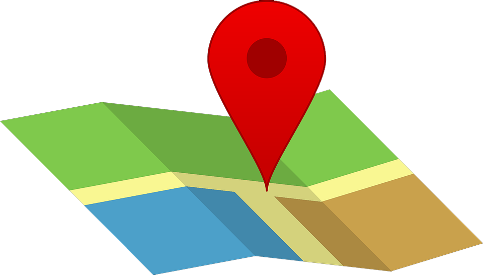 A map illustration with a red location pin, symbolizing navigation and geographic information.